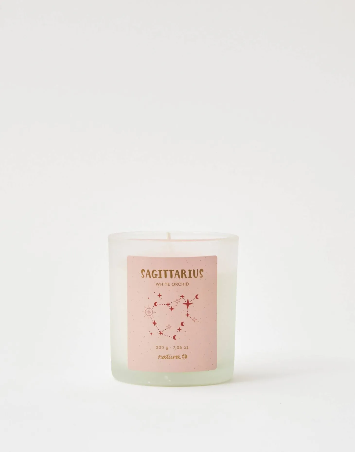 Velas hechas en España con cera vegetal de soja y con ilustración en la parte frontal representando cada signo del zodíaco.